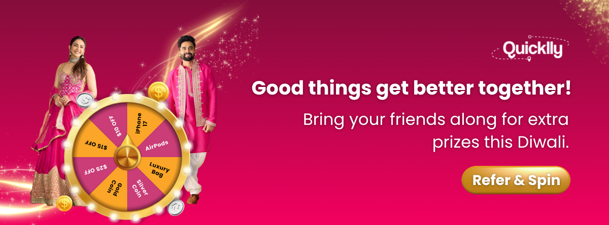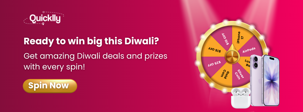Diwali 2025 is just around the corner, and it’s time to embrace the festive spirit with some exciting surprises. And guess what? Quicklly’s Diwali Spin the Wheel contest is live now. It brings you an exclusive opportunity to grab the best Diwali deals USA and win amazing prizes. Yes, you heard it right!