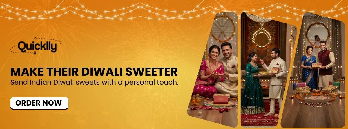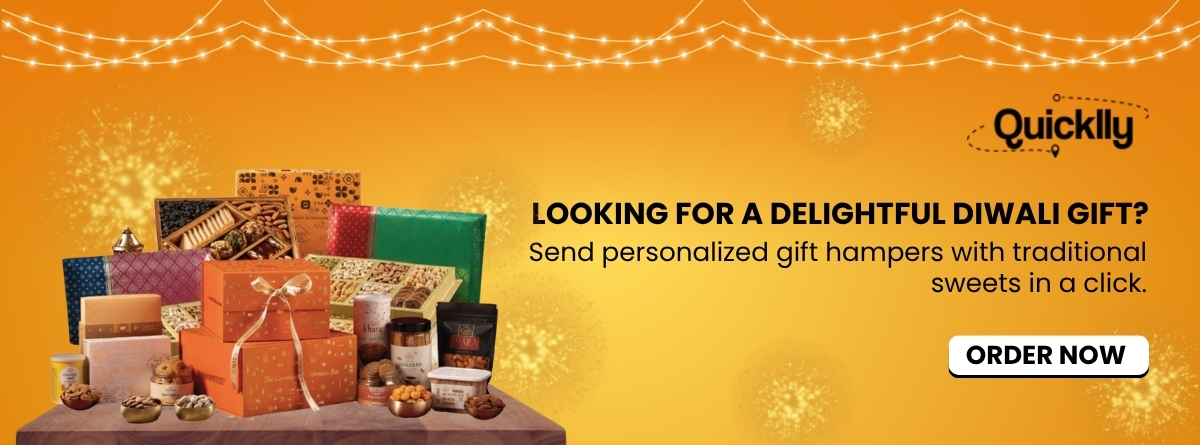 If you are looking for sweets or a gift basket, just know that Quicklly has got you covered. We help you to make Diwali extra special.