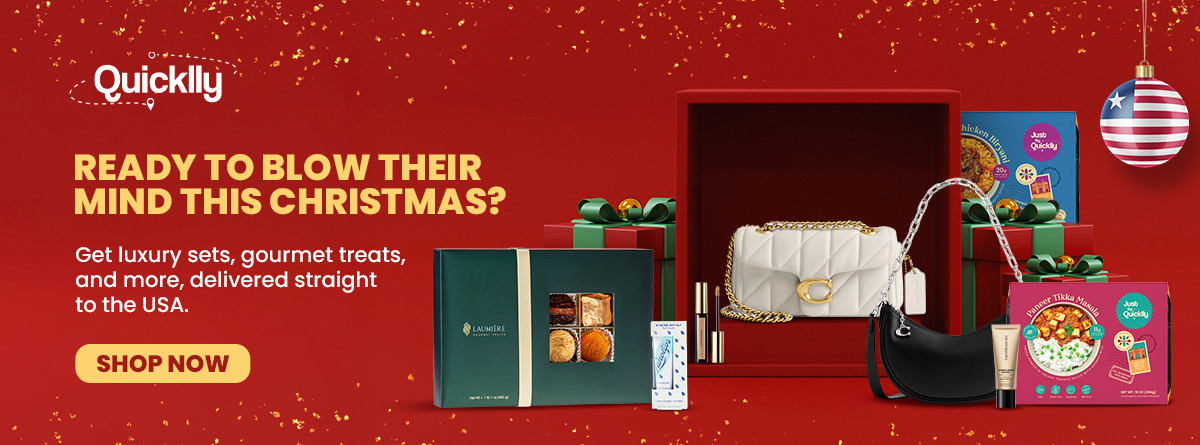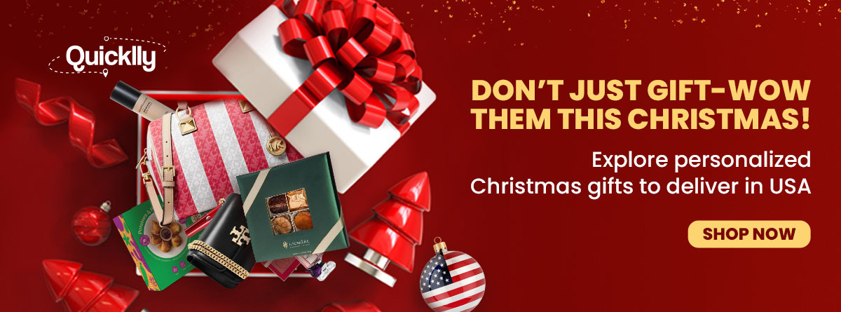 Quicklly allows you to send personalized Christmas gifts from India to the USA with ease. The platform showcases a wide selection of items ready for delivery.