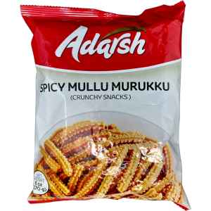 Bring home the appetizing piquancy of the South Asian palate as we deliver best quality Adarsh Spicy Mullu Murukku from Quicklly Indian Grocery Nationwide across USA delivered to your doorsteps Quicklly. Our product is freshly packed with wholesome taste, serving you an authentic Indian bite. Buy freshly packed Adarsh Spicy Mullu Murukku from Quicklly Indian Grocery Nationwide in USA.