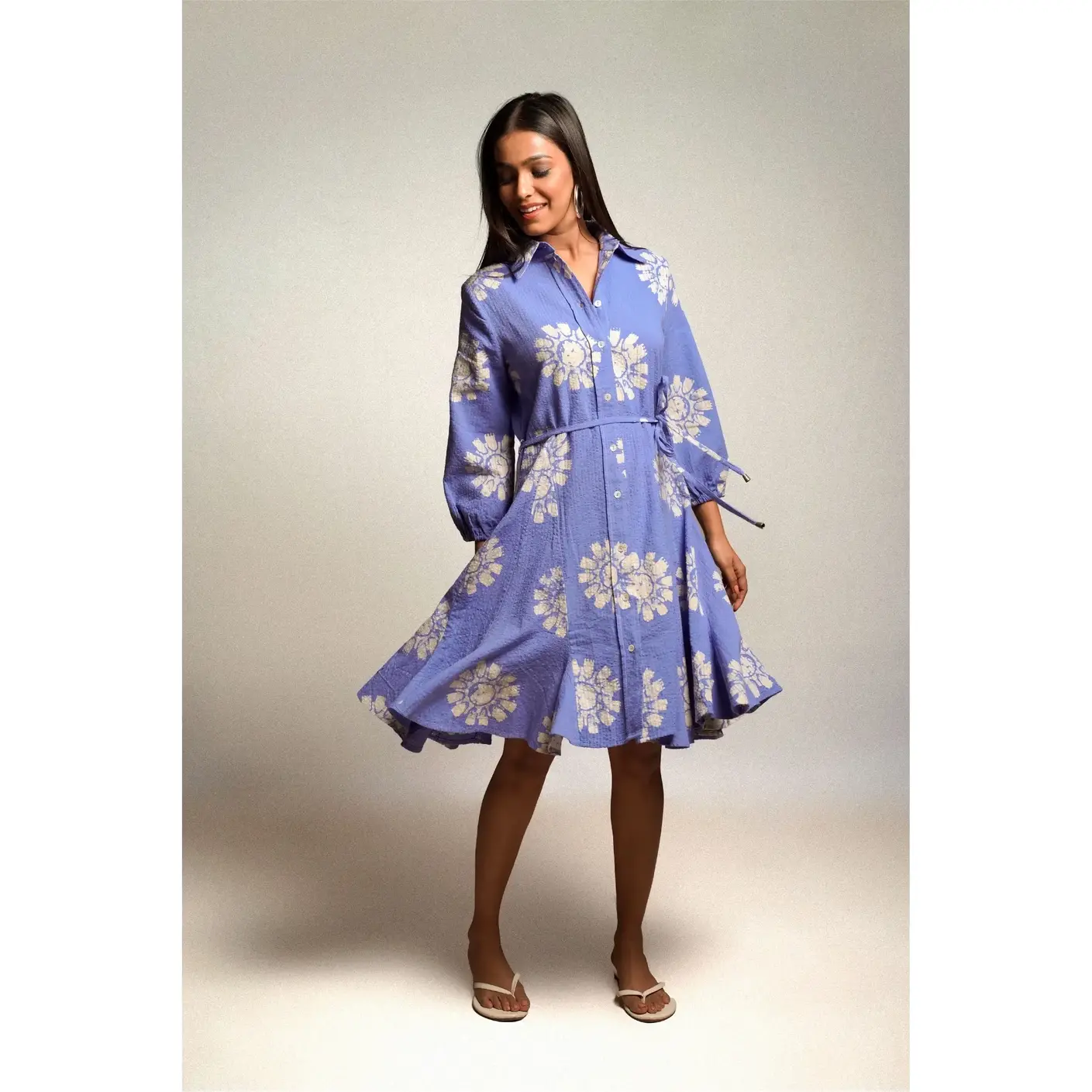 The retro chic 70s Kaftan drapes elegantly from the shoulder into an airy silhouette With a V neckline and batwing sleeves it ruffles down to a comfortable and loungy cropped maxi length where it stylishly tapers in at the hem Featured here in a vintage floral print in a crisp lined cotton organdy