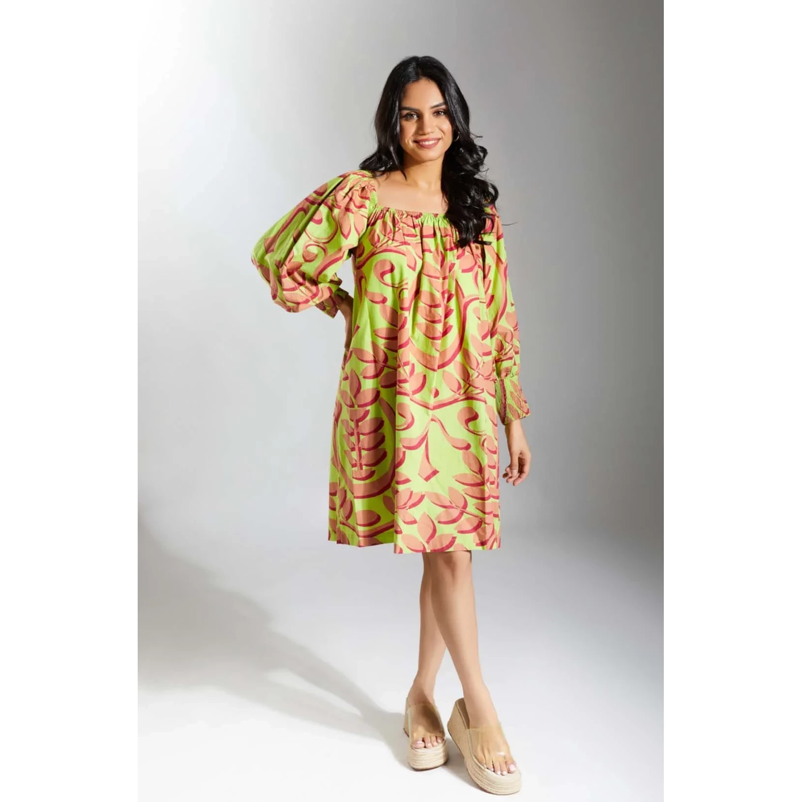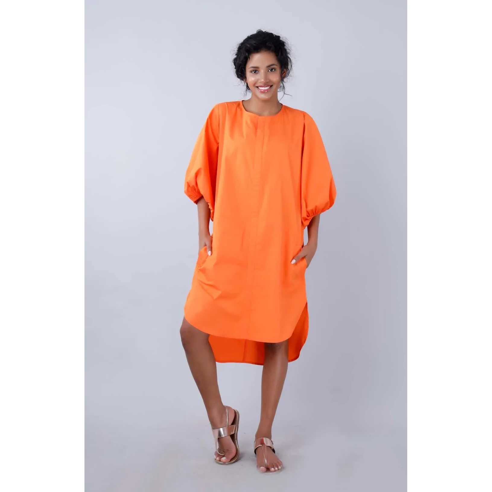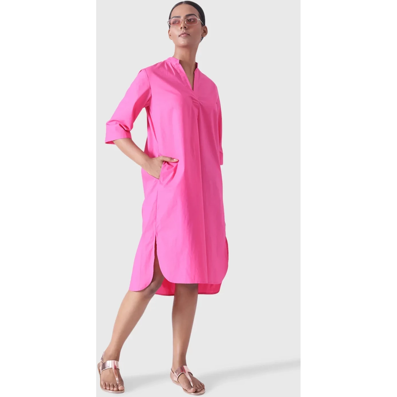 The French version This faux shirtdress is glammed up with metallic eyelets and cord ties A knee length straight shift with patch pockets the grey Lille falls perfectly in a cotton with a slight stretch