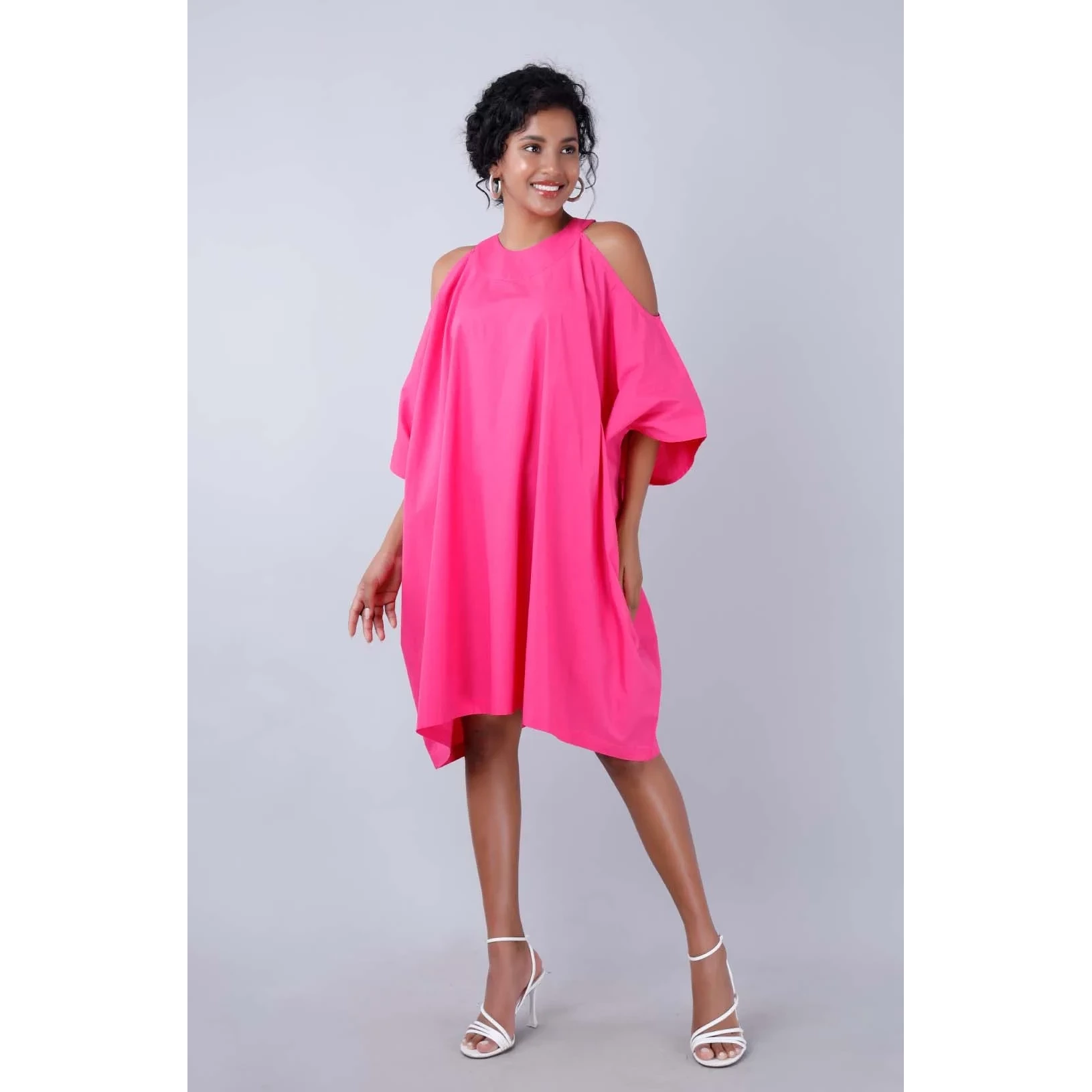 Dinner date wear The twist on the mandarin collar shaping into a V neck the front pleat the three fourth sleeves combined with the U high low hem completes the elegant yet comfortable silhouette which is so essentially Mala Singh Incorporated here again are the side seam pockets to hold your essentials And to top it the Valencia dress falls just right in a crisp clean 100 cotton poplin