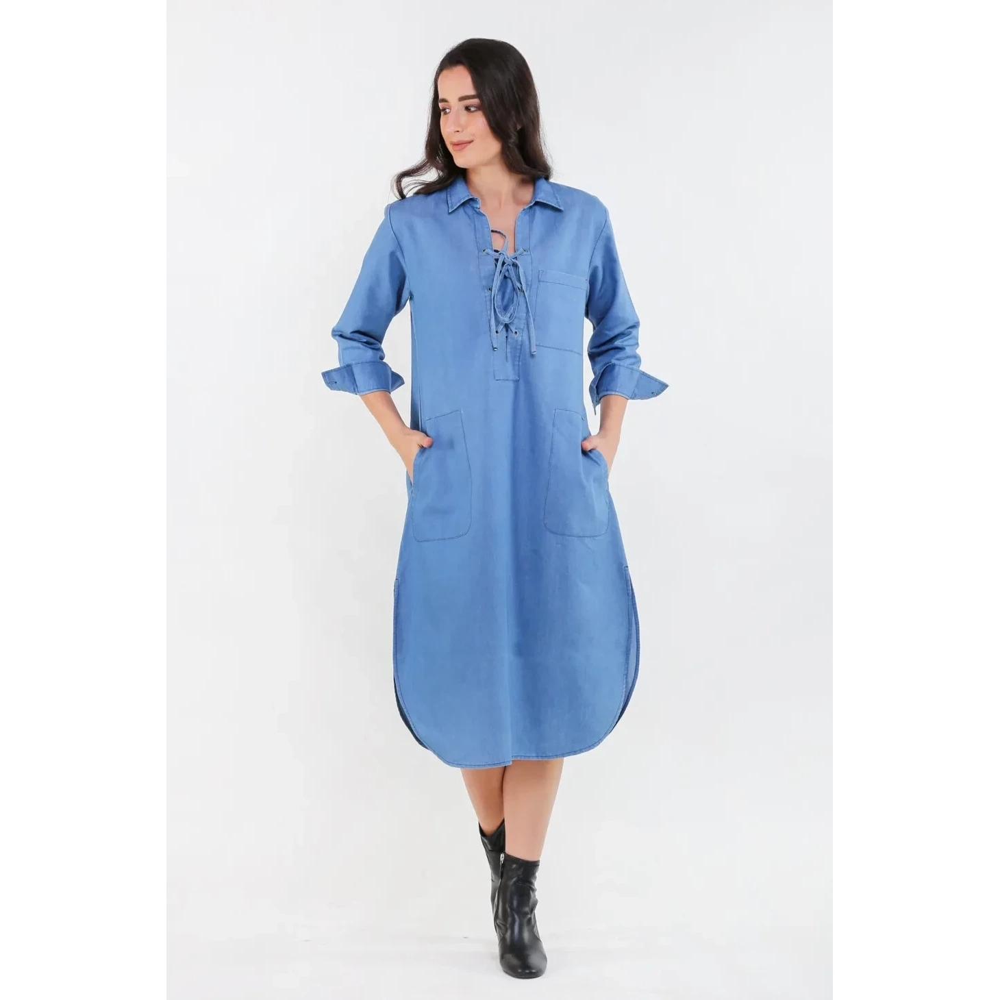 This elegant ensemble features a white mid length dress with a unique asymmetrical hemline creating a high low effect The dress has short sleeves a round neckline and a buttoned front placket Adorned with subtle diagonal line patterns forming diamond shapes it adds texture and visual interest to the simple silhouette Paired with matching white trousers that peek out from under the high front hem this outfit is both modern and modest Completed with white open toe heels this set is perfect for casual wear or semiformal occasions where comfort and style are desired