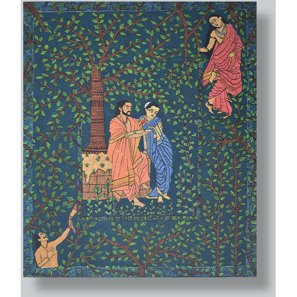 Krishna with gopies Painting by Shubham Gupta Acrylic on cotton cloth painting ArtozOn