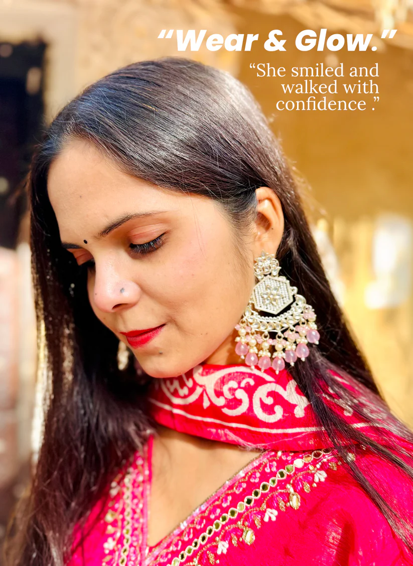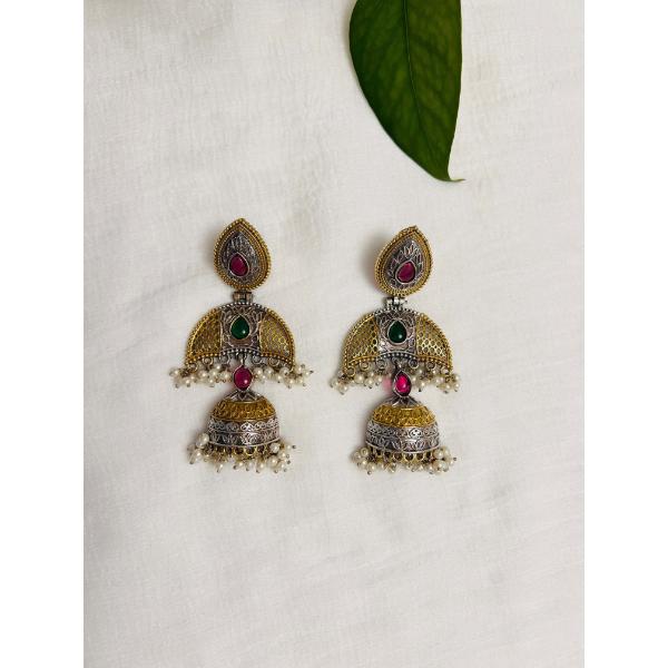 These silver oxidized dangle earrings feature a beautiful pink stone that adds a vibrant pop of color to any look Designed in a traditional Indian style they offer a perfect blend of ethnic charm and everyday elegance Lightweight and eyecatching these earrings pair well with both casual and festive outfits