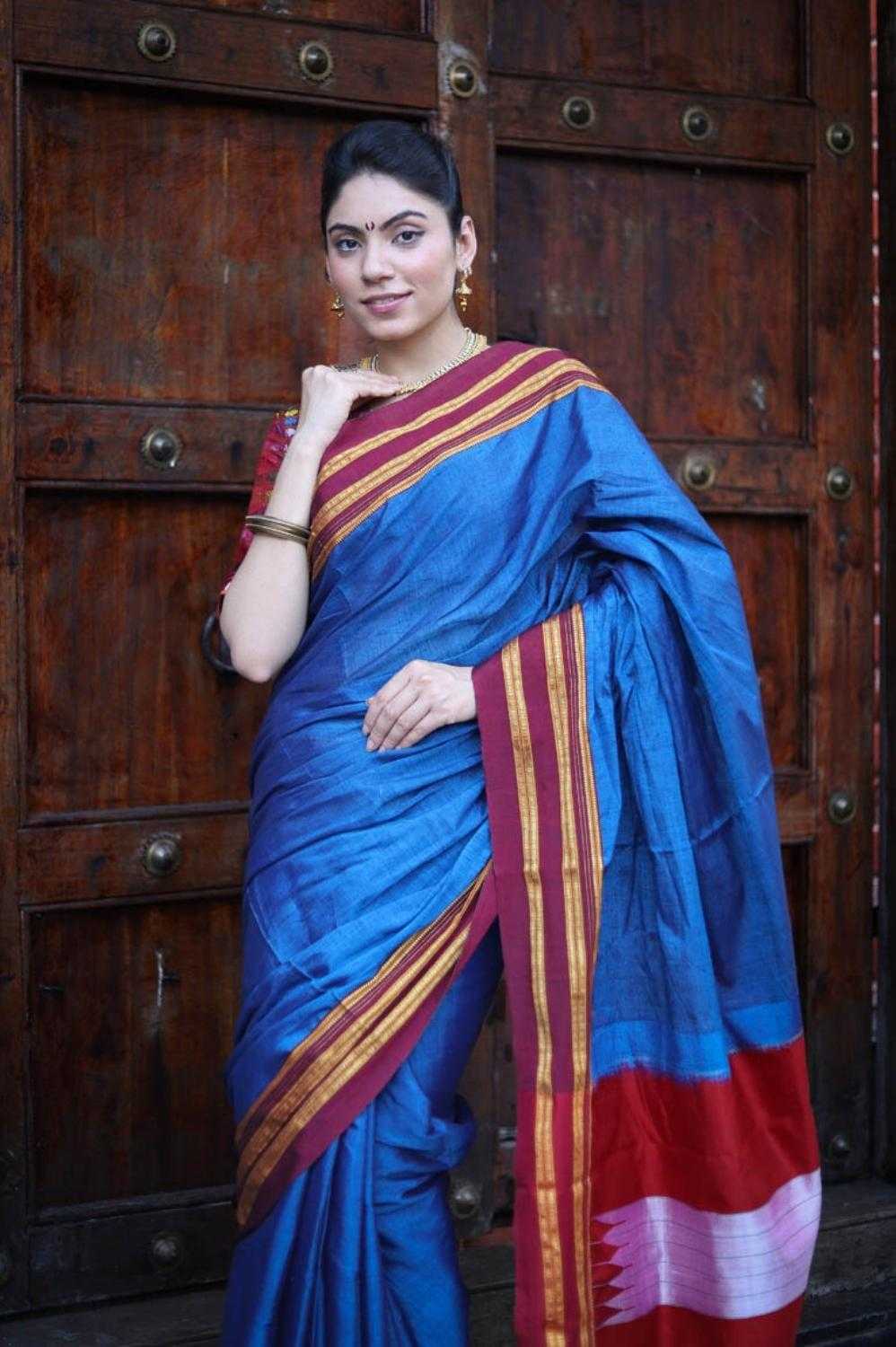 Introducing our Cerulean Blue Handloom Cotton Silk Ilkal Saree, a graceful saree crafted from pure handloom cotton silk fabric in a stunning royal blue shade. This saree showcases an exquisite designer weave with a temple border design, making it suitable for various occasions, including daily wear, festive celebrations, and ceremonial gatherings. The saree comes with an unstitched blouse piece made from complementary cotton silk fabric, allowing you to customize your blouse style. Elevate your fashion with this elegant saree featuring an elegant geometric pattern, perfect for adding a touch of charm to your wardrobe.